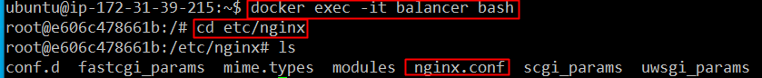 nginx 컨테이너 내부에 접속하여 nginx.conf 라는 이름의 설정 파일을 수정해야 한다.