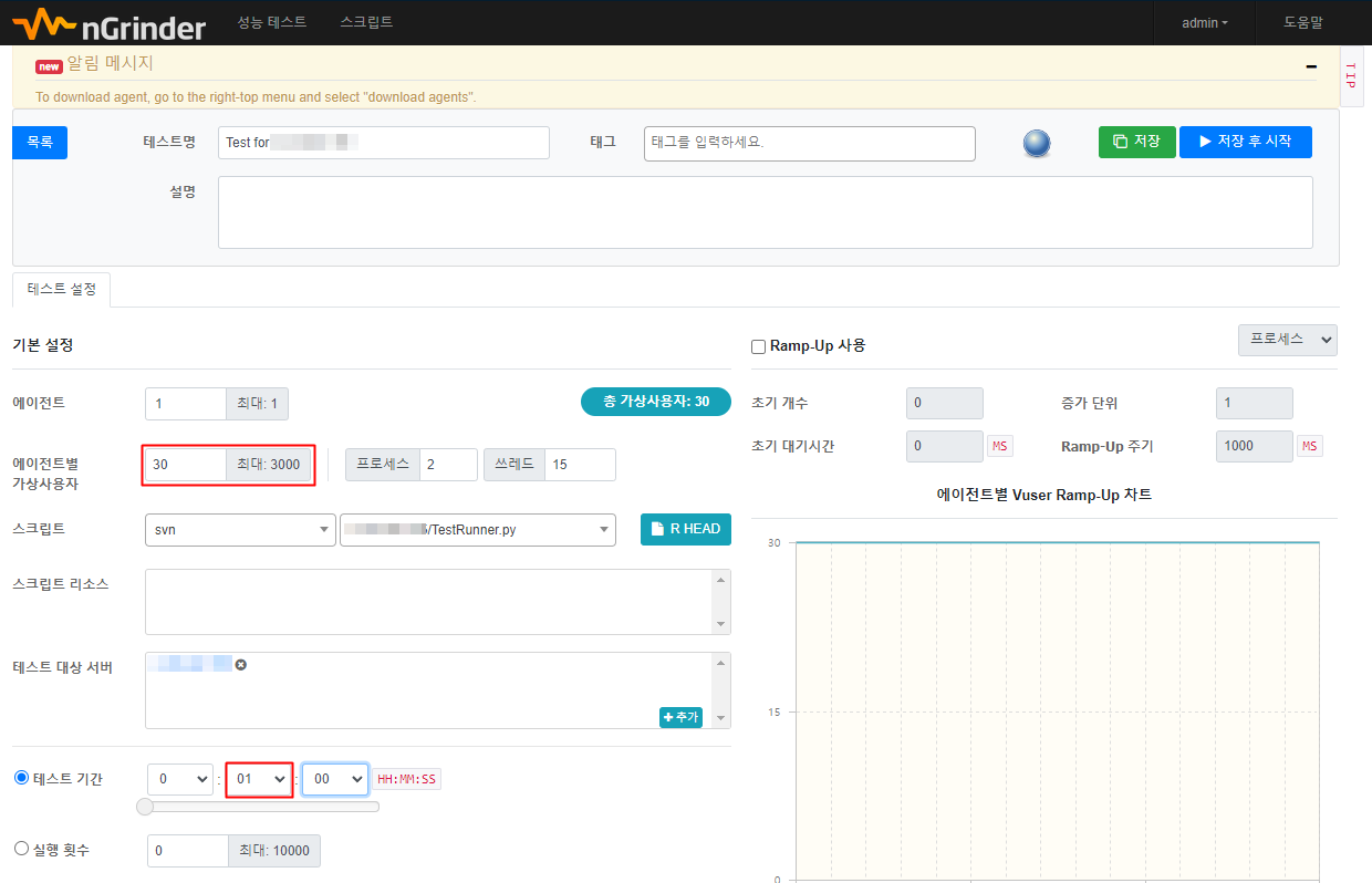 nGrinder를 이용해 30개의 요청을 1분동안 테스트한다.