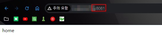 서버 컴퓨터의 80번 포트로 접속하면 아까 ngnix 화면이 뜨는 것과 달리 애플리케이션의 홈 화면이 나타나는 것을 확인할 수 있다.