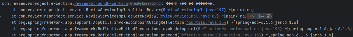 reviewService.deleteReview() 내부 코드인데 (@Async 어노테이션을 주목하자) validateReview() 메서드를 호출해서 해당 리뷰가 존재하는 리뷰인지 확인한다.